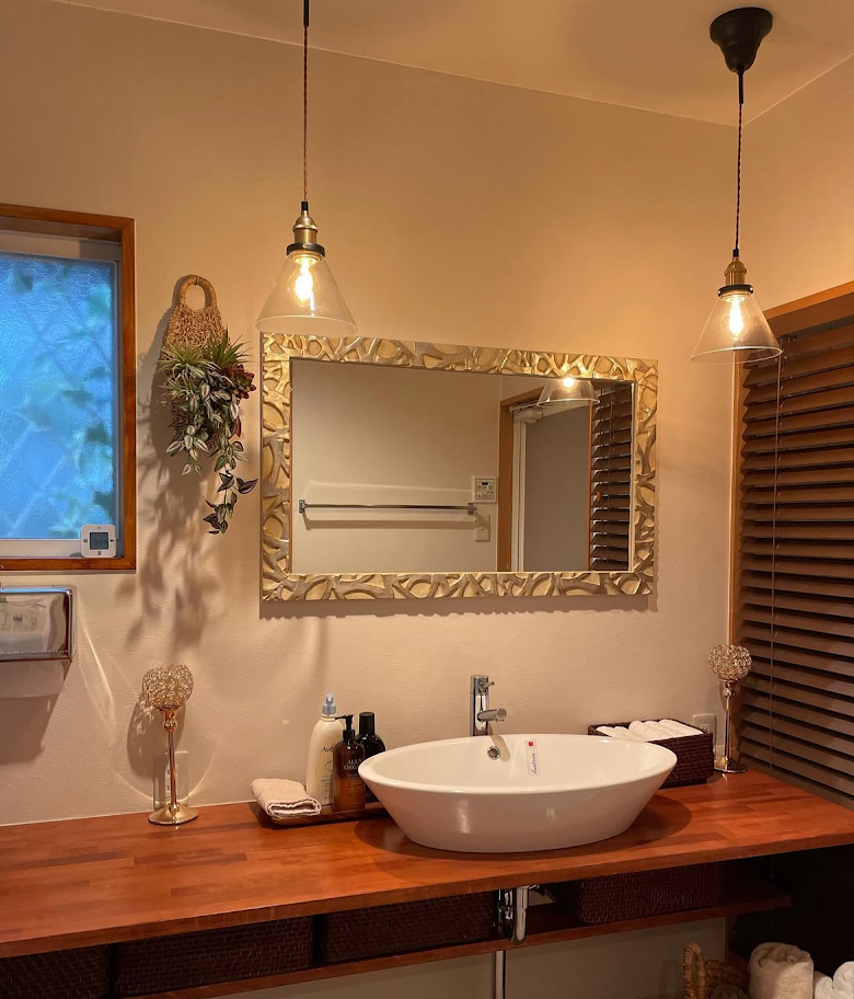 脱衣所にある既製品の鏡の付いている洗面台がどうしても嫌で帰宅する際、1番最初に目に入る所になるので、疲れて帰宅した後の気分を上げてくれる場所にしたいと思い使いやすくほっと落ち着ける空間にしたいとソレイユさんにリフォームをお願いしました。